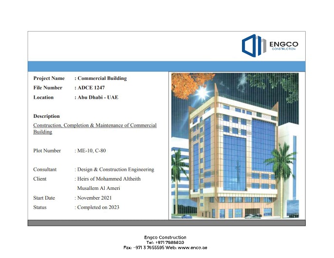 Construction, Completion & Maintenance Project Ref: ABCE 1247 Located at Abu Dhabi (UAE) further more Information..