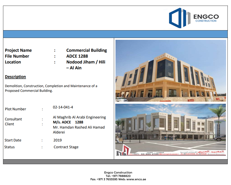 COMMERCIAL BUILDING (BF+GF+FF+SF+RF) Project Ref: ADCE 1610 Located at Al Ain (Plote No: 07-01-011-018), further more Information..